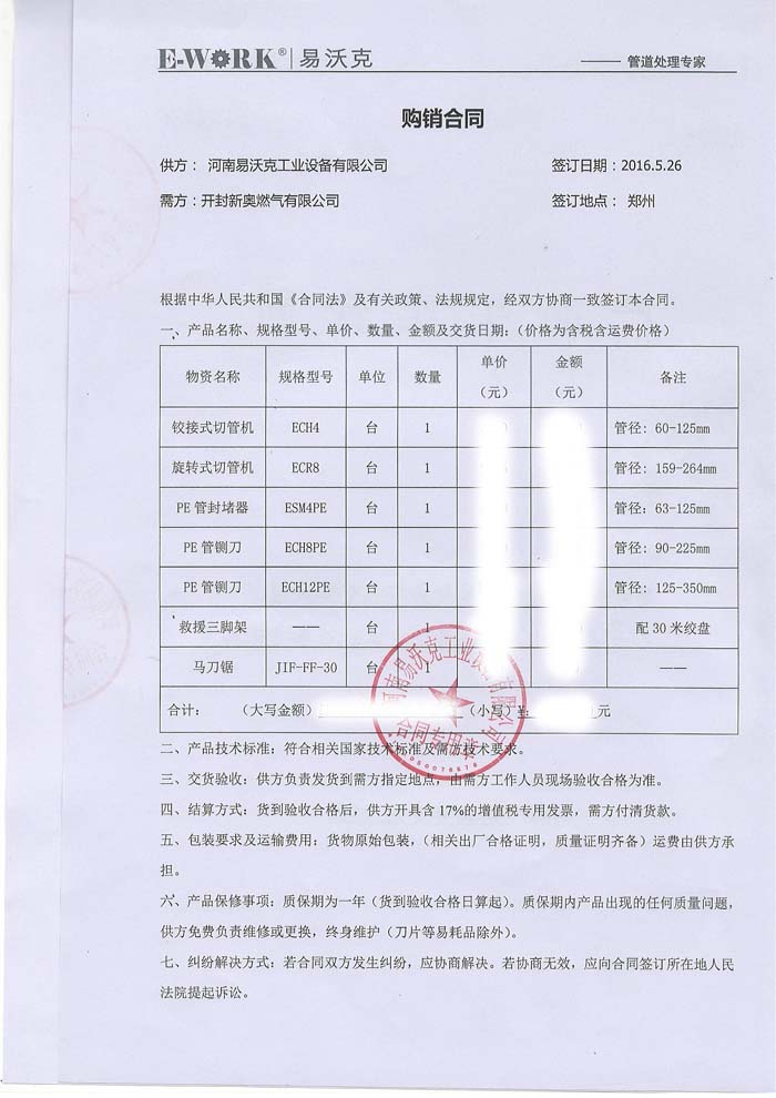 2016年開封新奧燃氣有限公司合作業(yè)績