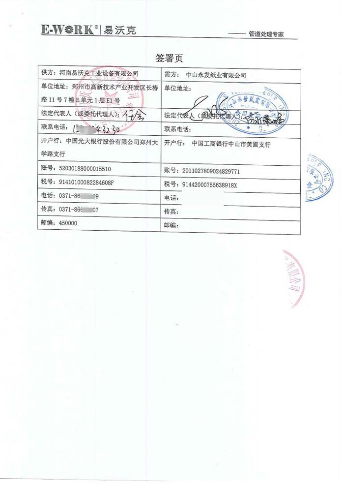 2017年中山永發(fā)紙業(yè)有限公司合作業(yè)績