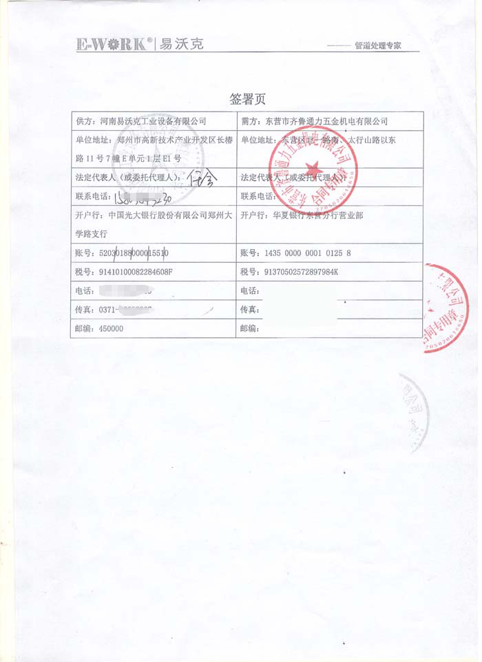 2017年東營市齊魯通力五金機電有限公司合作業(yè)績