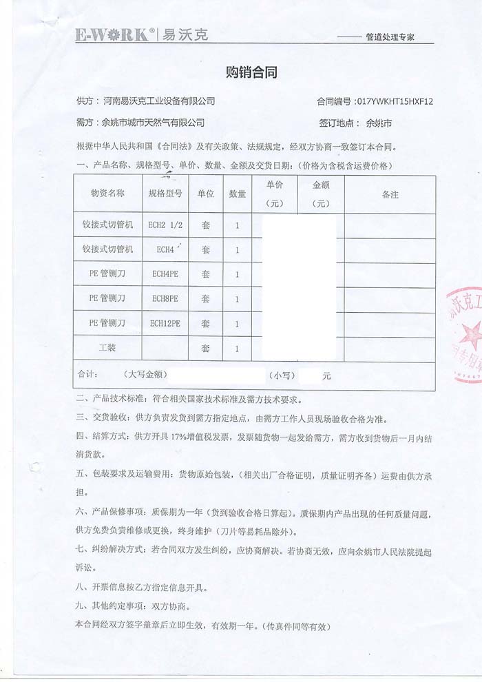 2015年浙江余姚市城市天然氣有限公司合作業(yè)績