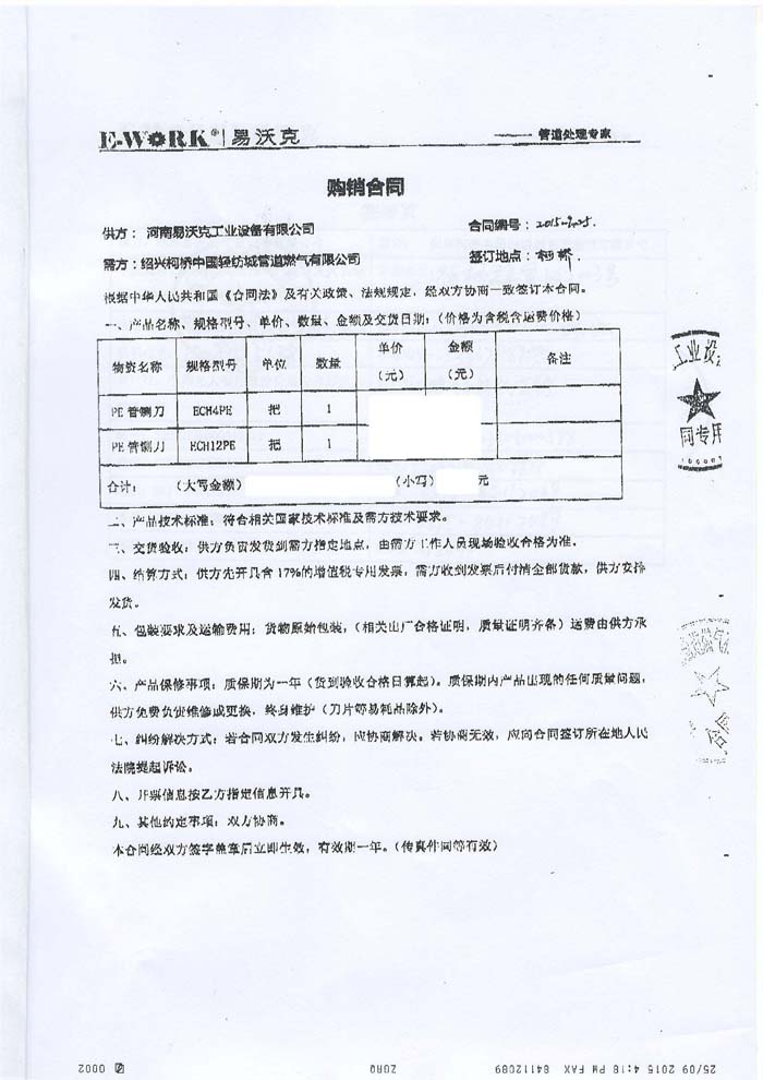 2015年浙江紹興柯橋中國輕紡城管道燃?xì)庥邢薰竞献鳂I(yè)績
