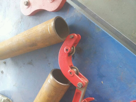 其次進入試用的是我司另一款金屬管切割工具:鉸接式切管機ECH4,本系列產(chǎn)品只需更換刀片便可切割碳鋼、不銹鋼、鑄鐵、球墨鑄鐵等不同材質(zhì)金屬管件,本次操作切割人員為上饒大通燃氣公司搶修隊伍的一名技術(shù)員工,簡單的講解了一下操作規(guī)范,便在100mm鍍鋅管件上開始切割, 一次使用時間為2分46秒完成切割,我們可以看到在管道切割過程中不產(chǎn)生任何的碎屑和火花,切口特別的平整。